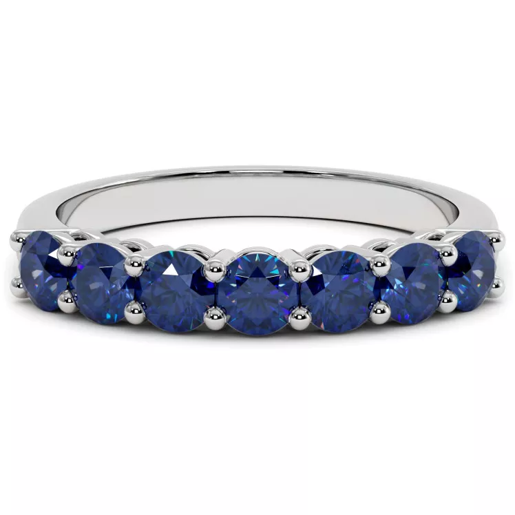 $580This stylish anniversary ring features 7 blue or pink lab grown sapphires (0.84 ctw) set in 14k or 18k white, yellow or rose gold.