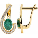 Amazing earrings with oval-cut emerald of 0.9 carats each and a track of small moissanites totaling 0.23 carats in white, yellow or rose gold of 14k or 18k.