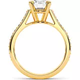 This cartier styled engagement ring features almost 2 ct moissanite center stone and 0.4 ctw side stones along the shank of 14k or 18k gold.