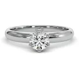 Stylish 0.5ct moissanite golden solitaire engagement ring with a Tiffany-styled setting.