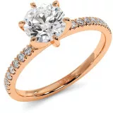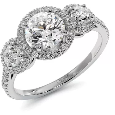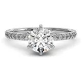 This beautiful ring features 1 carat center moissanite complemented by 18 sparkling moissanite side stones (0.2 ctw) set in 14k or 18k white, yellow or rose gold.