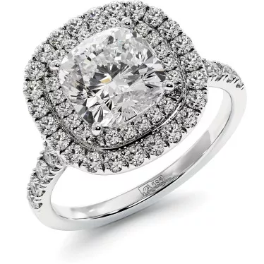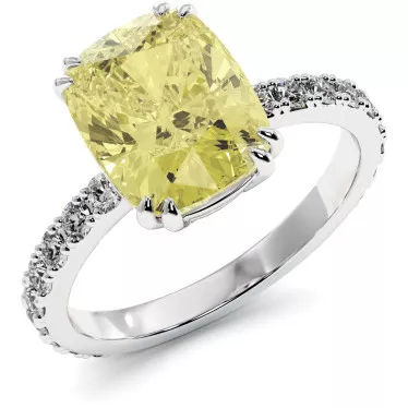 This beautiful ring features 1 carat center moissanite complemented by 18 sparkling moissanite side stones (0.2 ctw) set in 14k or 18k white, yellow or rose gold.