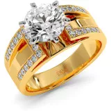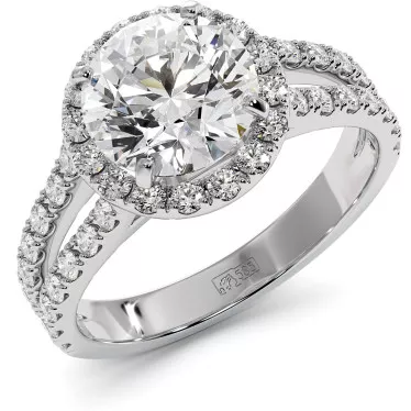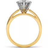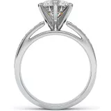 This stunning 2.2 carat total weight moissanite ring features 1.9 ct center moissanite and 30 sparkling moissanite (0.3ct) side stones around the shank made of 14k or 18k gold.