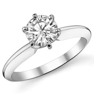 Elegant 1ct moissanite golden solitaire engagement ring with a Tiffany-styled setting in white, yellow or rose gold 14k or 18k.