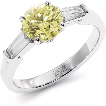 This striking graff promise styled moissanite engagement ring features a 3.6ct fancy yellow pear cut moissanite center stone and 0.86ct of smaller colorless pear moissanite side stones, cast in your choice of 14k/18k gold.