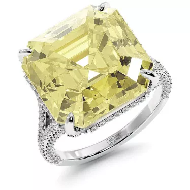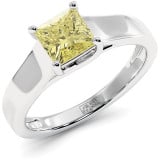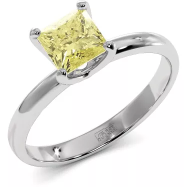 This trellis-styled 1ct princess cut yellow moissanite ring is available in 14k and 18k white, yellow or rose gold.