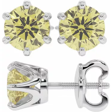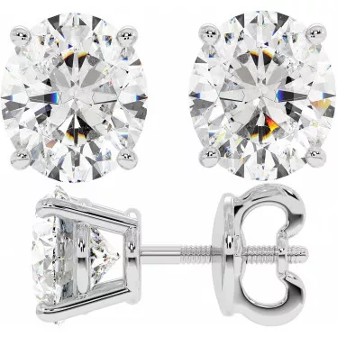 These beautiful round brilliant moissanite stud earrings (1.9ct each) are designed to rest as close to the ear as possible to prevent drooping of the earring. Available in your choice of 14k white, rose, or yellow gold.