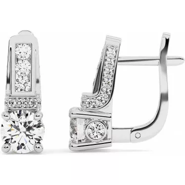 Luxurious earrings with magnificent central moissanites of 1.9 carats each are combined with a scattering of small moissanites, a total of 1.04 carats in white, yellow or rose gold 14k or 18k.