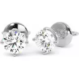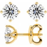 These beautiful round brilliant moissanite stud earrings (1ct each) are designed to rest as close to the ear as possible to prevent drooping of the earring. Available in your choice of 14k white, rose, or yellow gold.