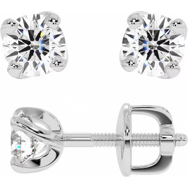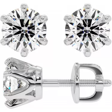 These essential 6-prongs crown moissanite golden stud earrings (1ct each) set in 14k or 18k white, yellow or rose gold.