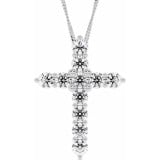 This is the perfect sized cross pendant measured 28*20mm featuring 3.5mm/0.15ct round moissanites in 14k or 18k white, yellow or rose gold.