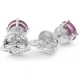 These 2.4 ctw gold stud earring features round blue or pink lab grown sapphires (1.2 carat each) in a basket-style setting of 14k or 18k white, yellow or rose gold.