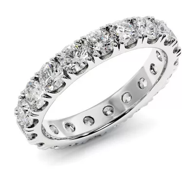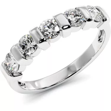 This stylish anniversary ring features 7 moissanites (1.7 ctw) set in 14k or 18k white, yellow or rose gold.