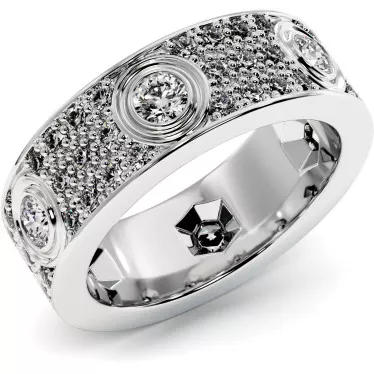 This stylish anniversary ring features 7 moissanites (1.7 ctw) set in 14k or 18k white, yellow or rose gold.