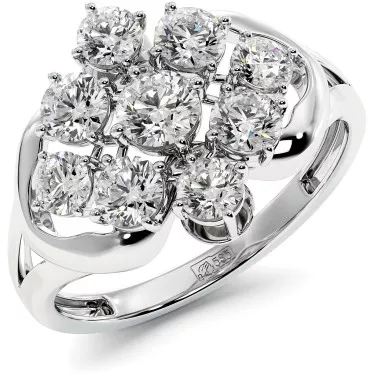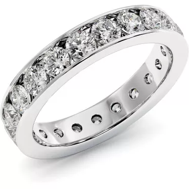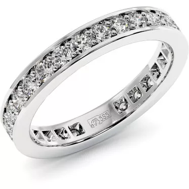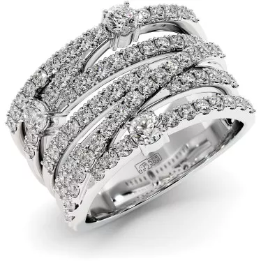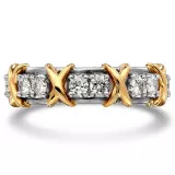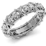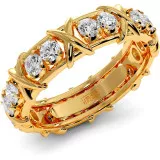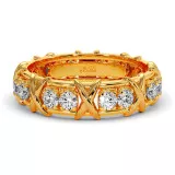 This iconic tiffany-styled ring design features 16 moissanite stones with X-shaped accents in 14k or 18k gold.