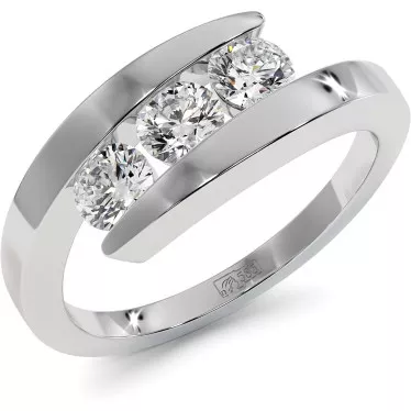 This iconic tiffany-styled ring design features 16 moissanite stones with X-shaped accents in 14k or 18k gold.