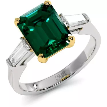 890 $Это стильное кольцо общим весом 1,7 карата украшено центральным изумрудом огранки кушон весом 1,1 карата, дополненным двумя триллионами (0,3 карата каждый) в золоте 585 или 750 пробы.