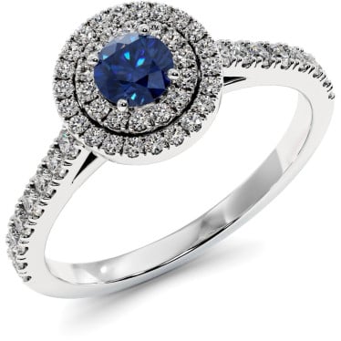 635 $Это идеальное помолвочное кольцо украшено центральным синим или розовым сапфиром весом 0,3 карата, окруженным двойным сверкающим ореолом муассанитов, суммарно 0,46 карат, из белого, желтого или розового золота 585 или 750 пробы.
